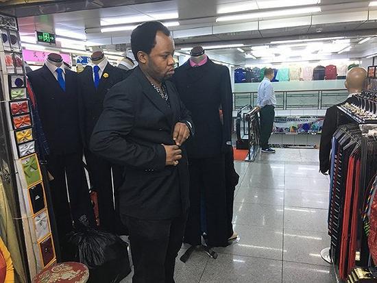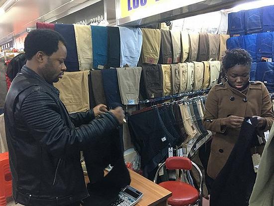 这里,一条男士休闲裤的价格在一百元左右。Felly说,这价位是质量比较好的,如果拿回非洲每条可以卖到两百元左右。但是十年前,这儿同样质量的货物价格只要五六十元,卖出的价格不会比现在少太多。