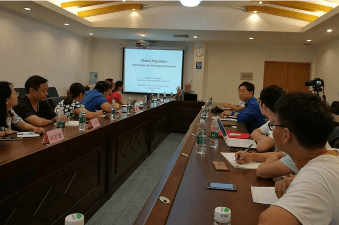 8月17日下午,美国马里兰大学公共政策学院道格拉斯•贝沙洛夫教授以Global Migration: Implications for Developed Countries为题,在北校区行政楼第三会议室为我校师生做主题报告。