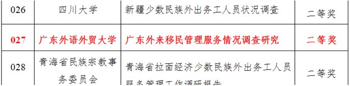国际移民研究中心提交的调研报告《广东外来移民管理服务情况调查研究》获得全国二等奖。