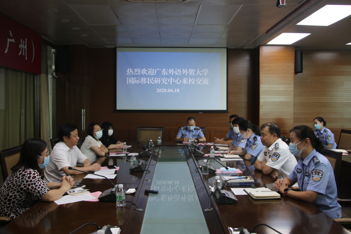 2020年6月18日,国际移民研究中心毛国民主任及中心研究人员应邀赴中国人民警察大学(广州)校区进行学术交流。中国人民警察大学副主任杨彦文教授与各教研室主任、副主任以及数十位老师参加了会议。