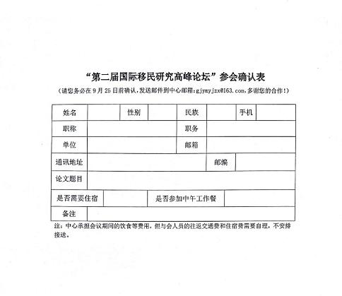 “第二届国际移民研究高峰论坛”参会确认表.docx